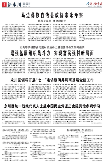 永川区领导开展“七一”走访慰问并调研基层党建工作