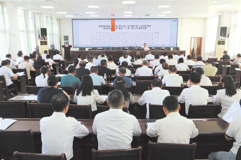 本报讯(渝西都市报记者 钟 梅 文/图)为掀起学习宣传贯彻党的二十届三中全会精神热潮,提升人大代表综合素质和履职能力,8月8日,永川区何埂镇人大主席团召开专题学习会议,传达学习习近平总书记在党的二十届三中全会上的重要讲话精神,镇第八届人大代表和部分区人大代表共90余人参加会议。