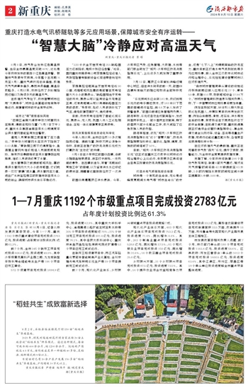 1—7月重庆1192个市级重点项目完成投资2783亿元