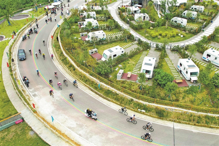 10月26日,垫江县三合湖公园,参赛队员骑行在赛道上。