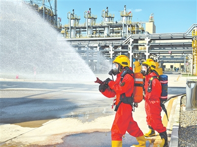 演练现场,分工明确、井然有序。公安交警设置警戒线,疏导管制交通,维护现场秩序;医务人员对救出的2名“中毒”人员进行紧急处置,并将其送往医院救治;消防救援人员火速开展灭火救援,利用消防移动水炮压制火势,对着火罐邻近罐区进行降温保护,待火势得到有效控制后,立即对泄漏位置进行堵漏……经过1个小时的紧急救援,大火被扑灭。紧接着,环保部门介入处置,对事故现场的环境进行监测和评估。