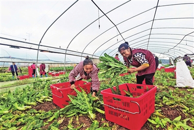 眼下正是秋冬蔬菜成熟上市时节。在荣昌区吴家镇双流村种植大户陈坤的蔬菜种植基地里,一株株绿油油的莴笋长势正旺。割菜、装框、搬运、装车……工人们穿梭在田间地头忙碌采收,现场一派热闹的丰收景象。该基地今年共种植60余亩莴笋,总产量可达24万斤。荣昌区融媒体中心记者 王新莲 通讯员 邹 翠 摄