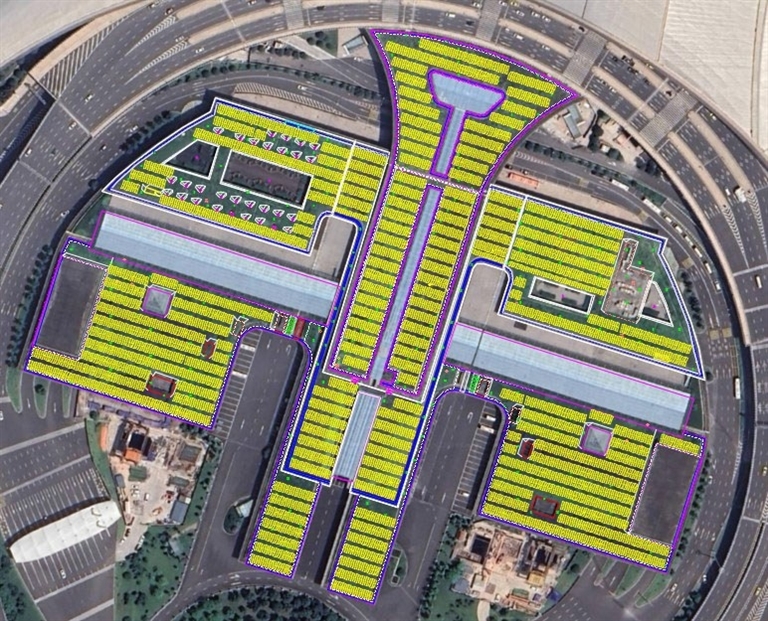 图为重庆江北国际机场光伏建设项目在候机楼区域示意图(黄色部分)。 受访者供图