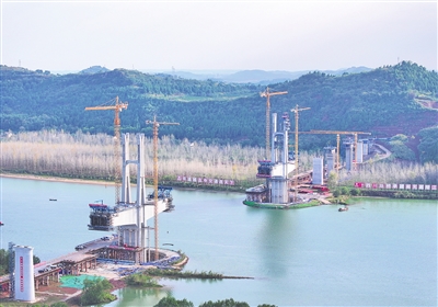 成达万高铁是我国“八纵八横”高铁网沿江通道的重要组成部分。线路西起四川省成都市天府站,途经四川省资阳市、遂宁市、南充市、达州市及重庆市开州区、万州区,接入既有郑渝高铁万州北站。正线全长477公里,设计时速350公里,其中新建线路419.8公里,接入既有成自高铁资阳西站。南充嘉陵江特大桥位于四川省南充市顺庆区搬罾街道和高坪区龙门街道之间,横跨嘉陵江,是全线控制性工程之一,也是全线施工难度最大的桥梁之一。大桥全长6224.98米,主桥采用141+328+141米矮塔混合梁斜拉桥,主跨328米,在时速350公里双线高速铁路矮塔混合梁斜拉桥中,其跨度居世界第一。