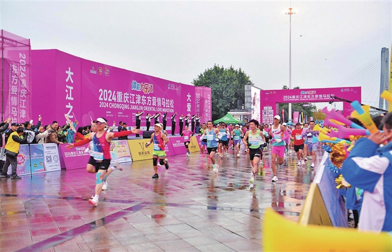 江津报讯(记者 江 波 贺 奎)12月8日,参加2024重庆江津东方爱情马拉松的选手做足充分准备,从元帅广场起点出发,踏上甜蜜赛道,为爱奋力奔跑。