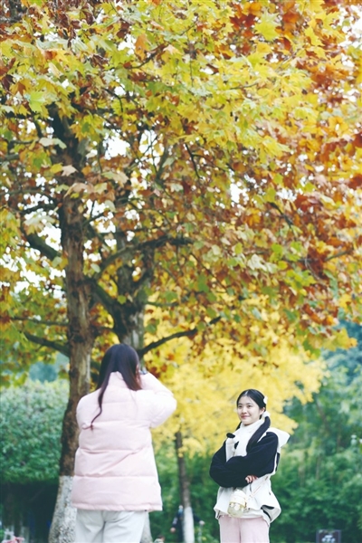 近日,巴南区龙洲大道、渝南大道沿线等地,道路两旁景观带的梧桐树色彩斑斓,形成一道靓丽的风景线。