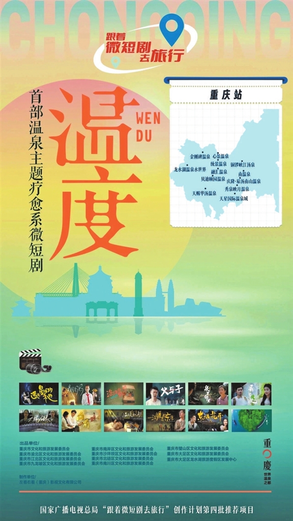 在这些推荐剧目中,有5部各具特色的重庆作品入选。《铁拳无敌杨芊芊》讲述了天赋异禀的女子杨芊芊成长为武林盟主的故事,展现了坚韧勇敢、拼搏进取的侠义精神。《温度》讲述了围绕温泉元素发生的孤独症疗愈、文化传承、乡村振兴等温情故事,展现重庆的历史人文、山水风景和新时代人们的美好生活。《重庆遇见爱》则以重庆独特的城市风貌为背景,聚焦新时代青年投身乡村创业的历程。此外,《嗨!微剧场之烟火星辰民生季》《遇见可克达拉》也于近期入选。