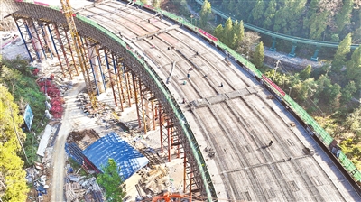 12月16日,酉阳县入城公路改造工程小坝转盘标段工地,工人正在有序施工。