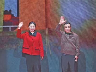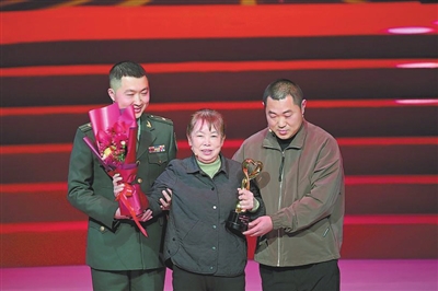“妈,是我们,来看你了!”就在这时,现场响起洪亮的声音,张兴会的两个“儿子”刘义、张银出现在舞台一侧。