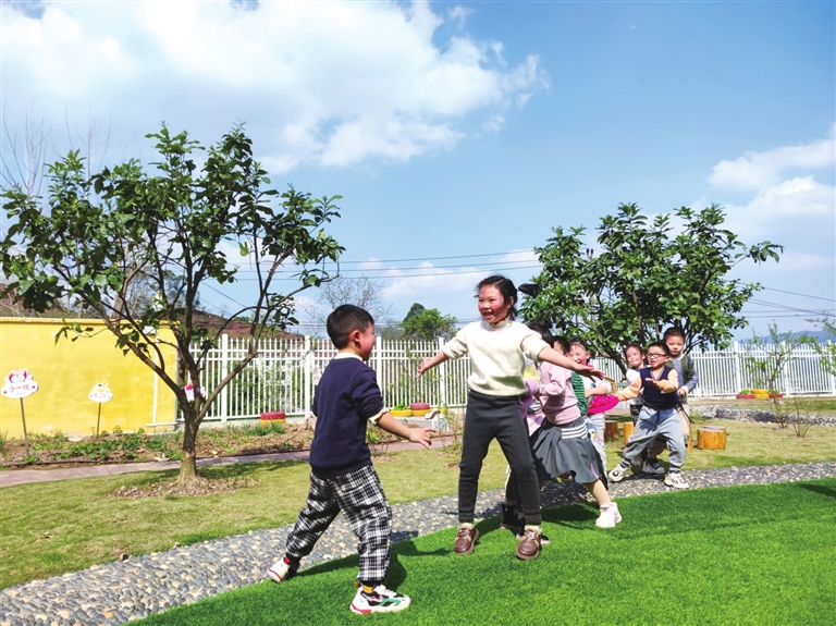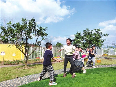 在“农趣成长”空间里,双石中心幼儿园党支部利用沙、石、水、树、花草、动物等大自然最基本的元素,打造种植园、养殖区、沙水池、大型玩具区等幼儿室外生态游戏环境,引导幼儿根据四季变化种植适宜的蔬菜、农作物、瓜果,饲养芦丁鸡、鹌鹑、孔雀等动物,让孩子们在探索自然的过程中,培养他们的观察力、创造力和团队合作精神。