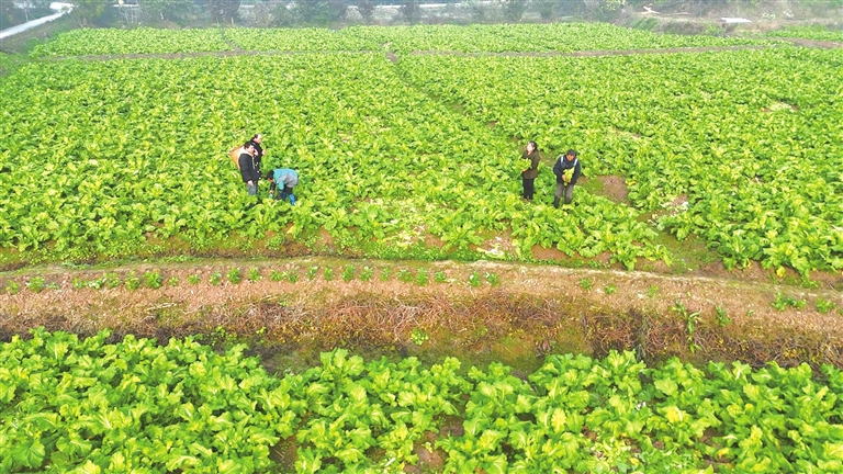 近年来,当地将农村闲散、撂荒土地整合盘活,采用“粮菜”轮作模式,变“冬闲田”为“增收田”,年产儿菜250万斤左右,大大提升了村民收入和土地利用效率。同时,通过引进订单农业、电商农业等方式,拓宽农民增收渠道,助力乡村振兴。