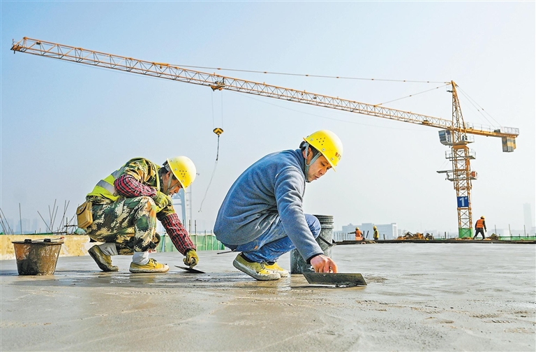 1月12日,位于南岸区鸡冠石镇的鸡冠石污水处理厂四期扩建工程现场,工人正在加紧施工。