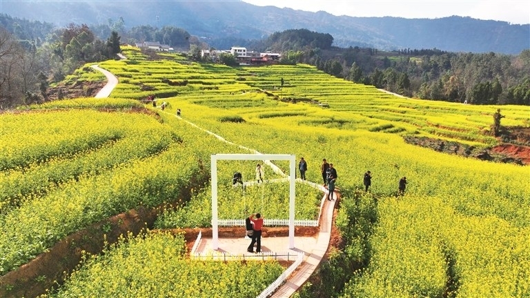 每年农历冬月下旬,中都镇境内万亩油菜花便次第盛放,比川南其它地方大约提前两个多月,花期可持续到次年3月份,被众多游客誉为“川南最早春天”。