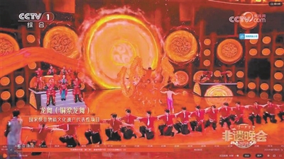 铜梁龙舞已有上千年历史。2006年,铜梁龙舞被列入第一批国家级非物质文化遗产代表性项目名录。晚会中,铜梁龙舞队员身着华丽服饰,手持长龙,献上一场精彩表演。两条长龙在舞台上时而上下翻飞,时而左右腾跃,与川江号子、金桥吹打、土家啰儿调等重庆其他地区的国家级非遗项目共同融合演艺,向全国观众展示了重庆地区国家级非遗的丰富内涵和独特魅力。
