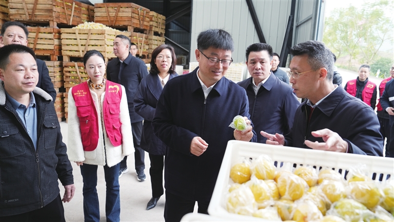 关衷效在调研中强调,要严守耕地红线,稳定播种面积,坚决扛好保障国家粮食安全责任。要大力发展现代生态高效农业,做深“土特产”文章,培育壮大乡村新产业新业态,完善农产品营销体系,做大做靓巴渝特色名优品牌。要深化强村富民改革,培育发展新型农村集体经济,强化产业和就业帮扶,持续巩固拓展脱贫攻坚成果。要提升乡村规划建设水平,持续改善农村人居环境,加强农村生态环境治理,完善农村基础设施和公共服务体系,加快推进巴渝和美乡村建设。要做优做精乡村旅游业,深入推进农商旅融合,办好赏花季、采果季、丰收节等节会活动,打造一批打卡胜地、旅游商品、网红民宿等,让更多群众在家门口就业增收。