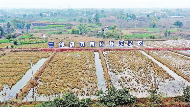 据了解,2022年底,二郎镇因地制宜引进业主,采取“稻虾”种养结合的方式,发展小龙虾产业。目前,全镇已发展有“稻虾”种养业主12家,种养面积5000余亩,年产小龙虾25万公斤、年产值6000余万元,带动500余名村民就业,并成功举办重庆合川(二郎)首届“稻虾”乡村文化美食节,打响了二郎小龙虾名气。