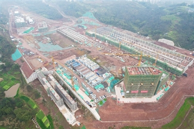 巴南日报讯(记者 郭 进 文/图)近日,由重庆轨道集团建设、中国铁建二十二局承建的重庆轨道交通24号线一期工程鹿角车辆段综合维修楼主体结构顺利封顶。