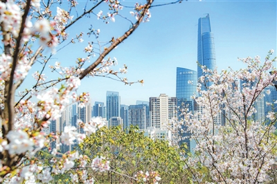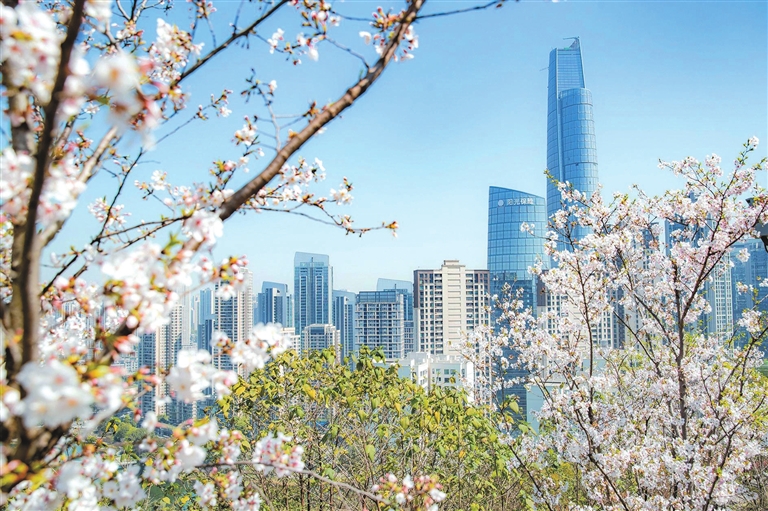 山花烂漫绘春景,落英缤纷染碧空。3月25日,当春风抚过渝中大地,万物生发,众花吐艳,树翠鸟啼,春意浓浓。位于大坪的半山崖线步道“樱花长廊”,被大自然晕染上绮丽的色彩,化作一片花的海洋。粉的如霞,白的像雪,在枝头摇曳生姿,与葱郁的绿树相互映衬,尽显蓬勃生机,蓝天碧空下高耸的楼宇,与漫山繁花相映成画……市民、游客尽情享受大自然带来的繁花胜景,无论走至何处,都能觅到几许春色。