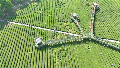 石笋山茶园的“福云六号”茶树品种具有芽头大、茶毫多、滋味重等特点,选手需在20分钟内按“一芽一叶”标准精准采摘。