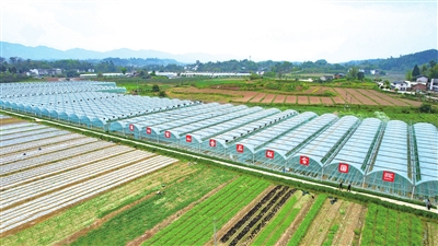 鸟瞰云雾花涧·璧山番茄小镇,连栋大棚整齐划一。