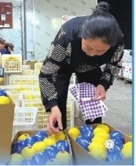 ⑦潼南:工人正在给出口越南的柠檬粘贴标签。 潼南区融媒体中心记者 马 艾 文/图