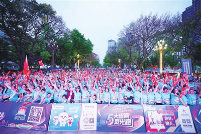 4月25日晚,重庆市大田湾体育场外广场被荧光与热情点亮,1000余名市民共同参与中国体育彩票2025大田湾全民健身嘉年华暨第五届大田湾荧光跑活动。作为大田湾全民健身品牌赛事,此次活动再度创新升级,以“追光奔跑,心向美好”为主题,融入智能科技元素、时尚消费场景,打造“体育+科技+消费+时尚”的沉浸式运动盛宴,让全民健身成为可触摸、可参与、可传播、可复制的城市生活方式。