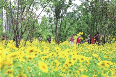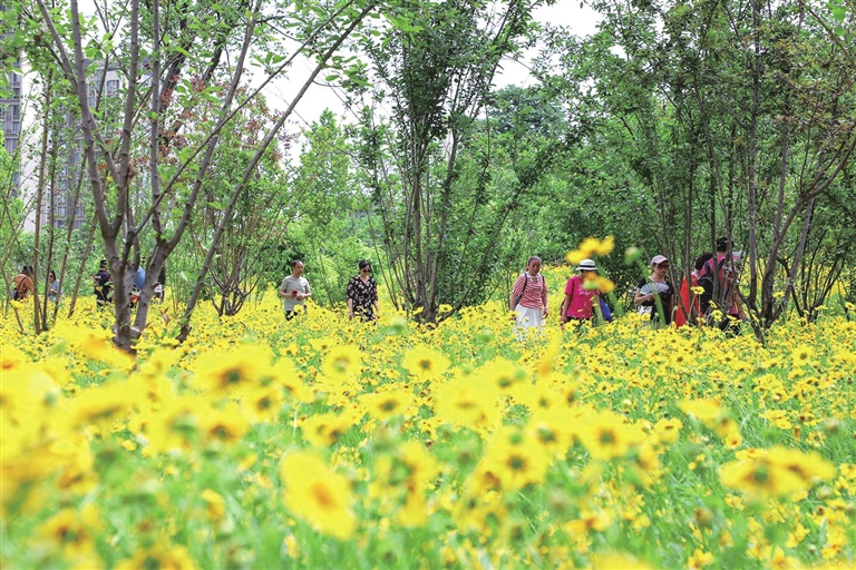初夏时节,塔山公园迎来了一年中最璀璨的时刻。金鸡菊、格桑花、天人菊等各类花卉竞相绽放,层层叠叠的缤纷花朵沿着山坡倾泻而下,宛如大自然打翻的调色盘。巍峨的白塔矗立在公园最高处,沉淀出岁月悠长的韵味。不少市民漫步花海,不时拍照打卡,定格初夏特有的美景。