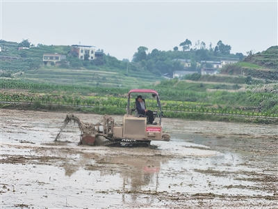 5月15日,在永川区仙龙镇太平桥村油菜基地,党总支副书记孔令超掏出手机,拨通了永川当地“农事热线”023-96008:“老管,我们村还有22亩,这两天能安排翻耕不?”