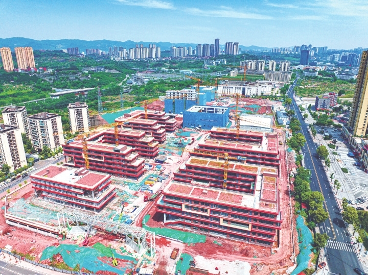近日,H13地块新建学校项目(大渡口区西南大学附属中学校)有序推进,约完成总工程量的86%,预计7月完工。