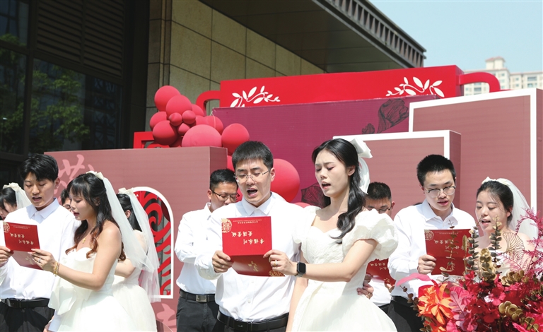 办理结婚登记的现场,有永川区妇幼保健院医生给每对新人送上免费体检。集体婚礼的新人们还参与了“新婚第一课”活动,学习婚育知识,了解沟通秘诀,缓解新婚焦虑。这些丰富多样的新婚课堂正是新《条例》中“加强婚姻家庭辅导服务体系建设”的生动延伸。
