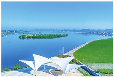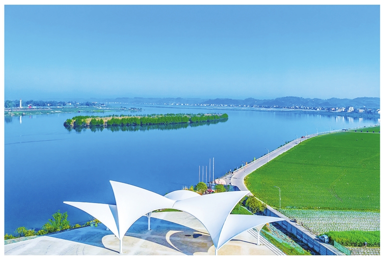蓝天映碧水,河岸绽白亭。在潼南,蔬菜基地绿野延展,小岛如翠,勾勒出宁静悠远的自然画卷。