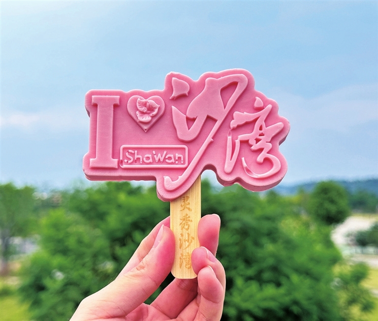 记者了解到,此次上新的文创雪糕以“戏剧入味、文化沁心”为核心理念,深度融合沫若文化精髓与现代消费场景,旨在为游客打造“可品尝的文化地标”。从概念设计到产品到货,沫若戏剧文创园深度参与每一环节,将“我爱沙湾”字样、三角梅元素与醇香草莓味型创新融合,外包装以国潮手绘技法呈现郭沫若故居线稿与原创IP“郭小沫”卡通形象,雪糕棍体刻有“灵秀沙湾”字样。此款雪糕不仅是味觉享受,更是一份可食用的“沙湾文化密码”。