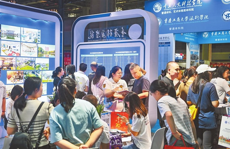 6月25日才揭牌的重庆工业职业技术大学(原重庆工业职业技术学院)展位前排起了咨询长队。考生和家长一方面关心学校升为公办职业本科大学后,哪些是职业本科专业,一方面关心学校的50多个专业,哪些和企业开设了“订单班”,方便毕业后顺利就业。