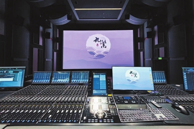 九紫文化行政经理雷寒说,混录棚(审片室)采用最新的技术,最新的系统集成。墙壁有1米多厚,采用多种不同的隔音吸音材料复合制作,支持1500多个轨道,配合全方位的52个扬声器,可实现全景声沉浸体验。