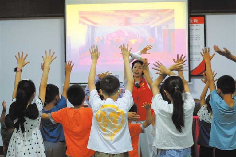 图为“三下乡”志愿者为留守儿童开设“成长必修课”。