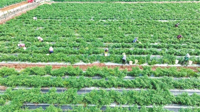 据了解,该基地每天有30余人采摘辣椒,采摘量每天在5000公斤左右。采收工作为附近村民提供了就业岗位,帮助村民增收。