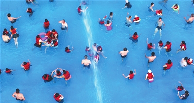 炎炎夏日,阳光洒满大地,空气中弥漫着炽热的气息。7月13日傍晚,永川区森之林新乐园水上世界,不少市民和游客带着孩子在造浪池享受激情冲浪的快感、在儿童水寨体验戏水的欢乐,与水为伴,消暑解热,尽情享受夏日里的凉爽。