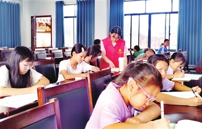 即将升入六年级的熊娅岚、何应菲是五间小学同班同学,合兴村人,同在这里集中自习。同学罗南轩得知情况后,从别村跑过来一同学习。即将升入五年级的李芯源家住村办公室旁边,来这里自习最是方便。王铭宇即将进入初三,对暑假村里有这样的学习环境非常高兴,他已制定了假期学习计划,正一步一个脚印踏实进行。不少同学表示,暑期课堂,共享清凉,虽不能看电视、耍手机,但坐姿不对有人提醒纠正,不会题目可以求助志愿者,不会整天抱着手机玩,不会与大人闹得不愉快,作息也有规律了。