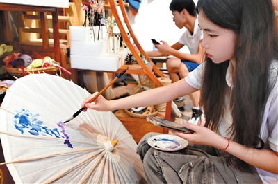 7月15日,松溉古镇油纸伞制作非遗代表性传承人罗钞师傅的工作室迎来了一群特殊的学徒。面对劈竹如丝、制骨似玉的传统工艺,西南政法大学“智研永川 法暖阡陌”实践团队的9位成员在罗师傅指导下,从绘图到上油全程参与。“制作伞骨最考验耐心,但当伞面撑开的刹那,所有的辛苦都化作了成就感。”罗师傅的话语里透着对传统技艺的坚守。当得知油纸伞传承正面临青黄不接的困境时,队员们自发记录制作流程,探讨传统工艺与现代科技融合的可能性。“我们不仅要当非遗的记录者,更要成为传播者。”队员张心雅擦拭着手中绘制的油纸伞说道。