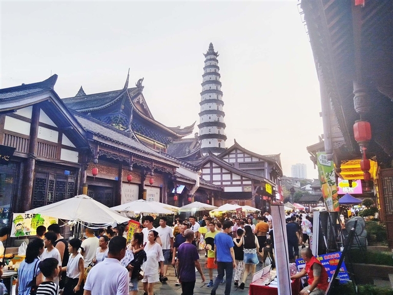 此外,整个音乐啤酒节还专门组办“江畔烟火”集市,汇聚了数十家网红美食、匠心小摊及合川桃片、合川肉片、合川峡砚等非遗展销。