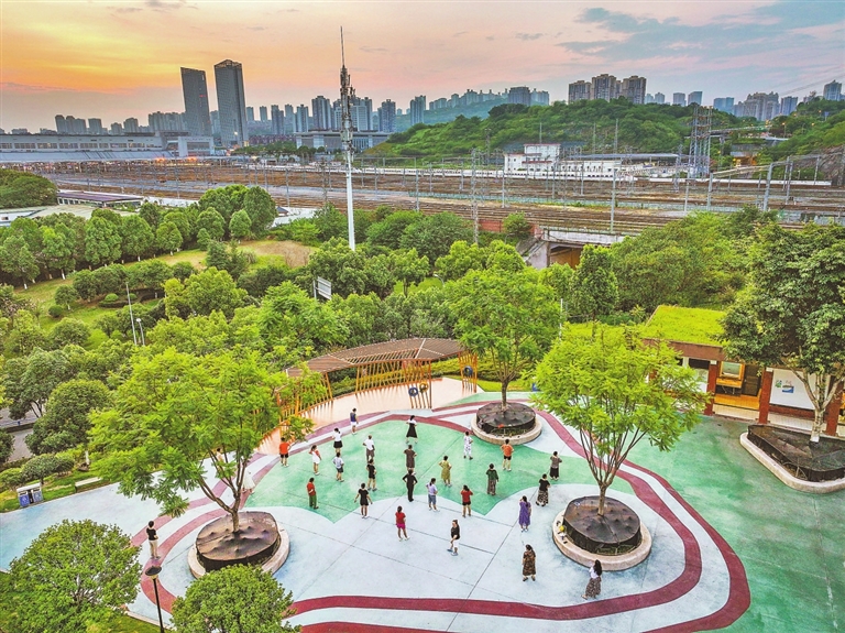 “改造前这里功能较单一,主要是作为附近居民出行借道的坡地。原来植被比较杂乱、设施陈旧且缺乏休憩娱乐场所。”渝中区绿化管理维护处工程股副股长储玫告诉记者,渝中区以老旧小区公共空间改造为切入点,把这里打造成了小而精的“口袋公园”。