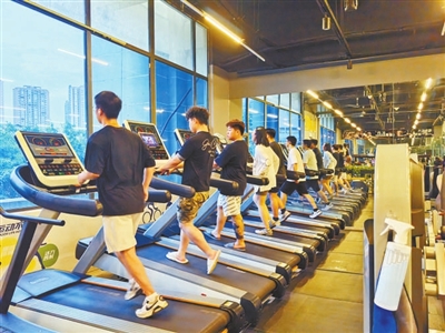 近日,记者走进城区一家健身房,只见灯火通明,动感音乐与器械碰撞声交织,洋溢着青春的气息。在有氧区,6台跑步机“座”无虚席。跑友们保持着各自的节奏挥汗如雨,尽情“燃”动夏日激情。在力量区,健身爱好者专注地进行负重训练,练就健美好身材。
