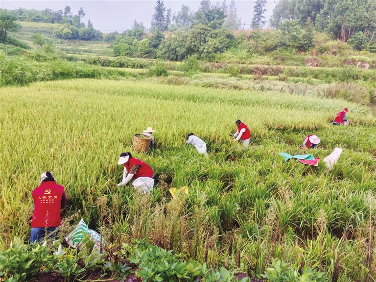 图为党员志愿者收割成熟的水稻。渝西都市报记者 钟 梅 摄