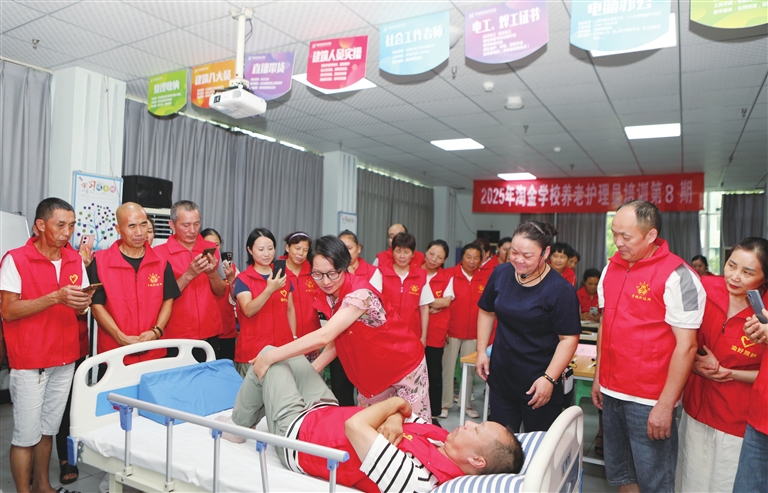 当日,永川区淘金职业技术学校养老护理员培训第八期开班,45名学员在9天的免费培训中,系统地学习掌握基础护理技能,为老年人提供日常生活照料,并参加《养老护理》国家技能等级证书考试。据了解,该校19年来,已免费培训15000余名养老护理员。