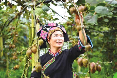2016年,西畴县引进文山浩弘农业开发有限公司,在三光片区打造猕猴桃基地,朱廷会就成了这里的常客。施肥、修枝、采摘、分拣,每一道工序她都烂熟于心。一年到头,这里基本都有活儿干,收入稳定而可观。