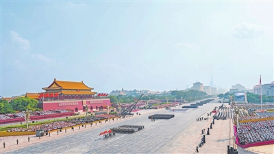 雄壮的军乐声中,习近平乘车沿着宽阔的长安街,依次检阅13个徒步方队、1个战旗方队、22个装备方队。受阅部队军容严整、意气风发,铁甲战车整齐列阵、威风凛凛。这是人民军队奋进建军百年的崭新亮相,这是中华民族捍卫世界和平的坚定宣示。