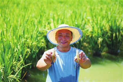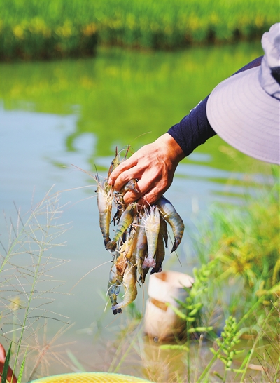 经过近年不断的养殖技术攻坚,别的地方稻虾田主要是养小龙虾,而这片稻虾田,则是“一稻双虾”,夏天养殖稻田罗氏虾,亩产100余斤,冬天则主要是养殖小龙虾,亩产300余斤,收益大大提高。基地负责人周成银说:”选择来苏镇养殖是因为光照水源和地理环境都比较合适,地势平坦,水质也好。每年都会请西南大学的专业团队进行肉质检测,主要针对虾肉的蛋白质、氨基酸等营养含量,以及农残、重金属含量进行检测,确保肉质绿色健康。”