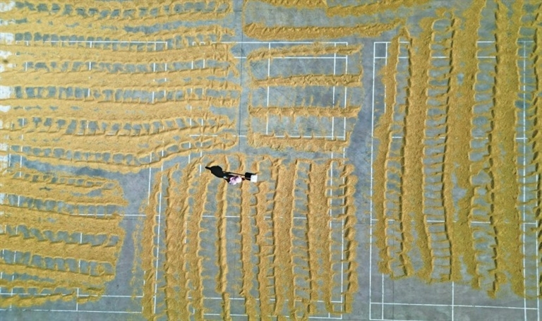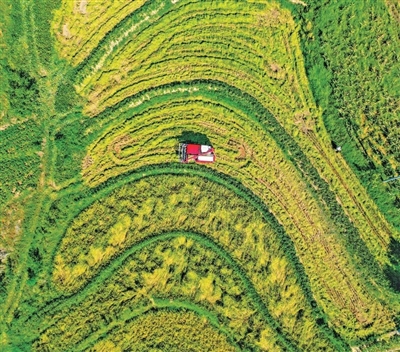 近日,九龙坡区西彭镇新民村的田野间已被丰收的喜悦填满。连片的稻田里,沉甸甸的稻穗压弯了秸秆,金黄的稻浪在微风中轻轻涌动,粒粒稻谷散发着淡淡的米香。