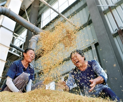 田埂边,收割机的轰鸣声成了此时最动听的“丰收序曲”。红色的机身穿梭在稻田间,锋利的割刀快速掠过,一粒粒金灿灿的稻谷便源源不断地涌入机身粮仓。村民们也没闲着。有的推着小板车在田边等候,帮忙分装稻谷;有的则骑着三轮车,将稻谷运往村里的烘干仓。车轮碾过田埂的声响,混着大家的谈笑声,热闹非凡。