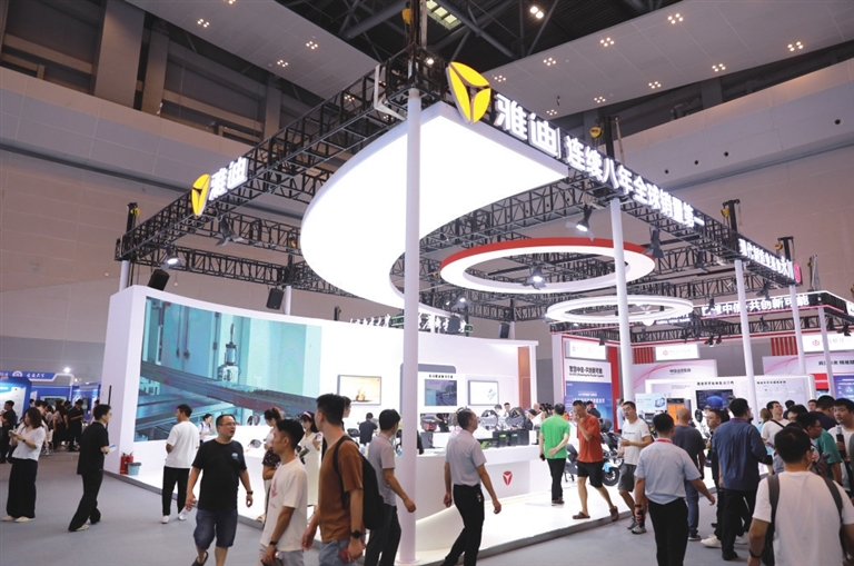 而新能源摩托车产业的“永川造”同样令人瞩目。在中央大厅综合展区,全球销量“八连冠”的雅迪掀起绿色科技风暴。在重庆雅迪科技有限公司的站台前,钠电池、光伏、车辆展示等五大区域犹如五张技术王牌,向世界展示“永川造”的硬核实力——车辆展示区域,搭载北斗系统的雅迪锐影,因拥有红灯自动预警、违章自动提醒等功能,受到观展群众的一致好评;钠电池展区域,观众凝神观看“极钠超充”生态演示,车电一体解决方案让“一刻钟满电出发”成为现实;山地专用油冷电机区域,工程师正详解如何攻克坡道热衰减难题,冠能T60等车型引得不少重庆市民试坐体验。